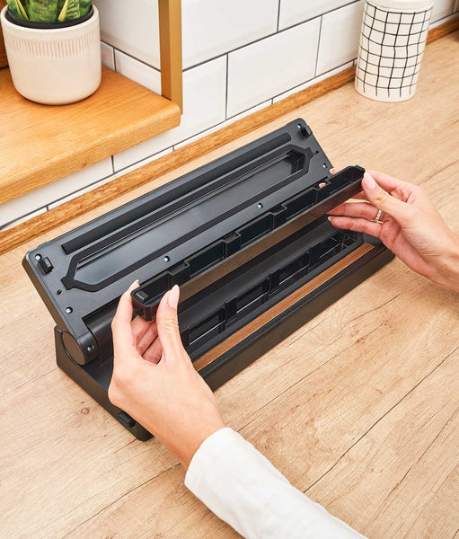 Cutter-ul integrat face tăierea foliilor de vidare extrem de rapidă. Economisești timp și materiale. Îți permite să ajustezi dimensiunile perfecte pentru fiecare vidare, fără efort suplimentar.