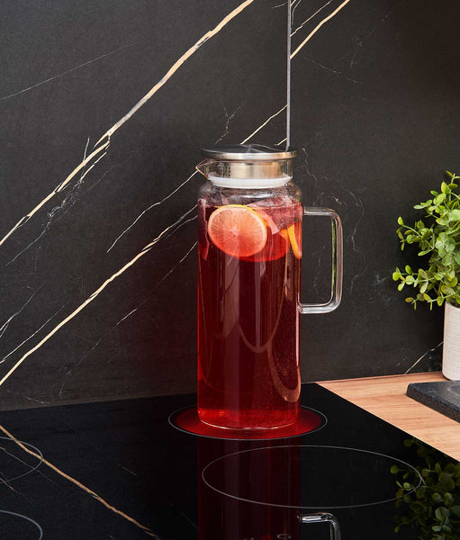Ideală pentru pregătirea și servirea băuturilor într-un mod practic și estetic. Această carafă versatilă e perfectă pentru orice tip de băutură. E perfectă pentru infuzii, apă rece sau ceai fierbinte. Fabricată din sticlă rezistentă la temperaturi extreme, poate fi folosită chiar și pe plită electrică pentru încălzirea băuturilor. Designul ergonomic și materialele de calitate o fac ușor de manevrat și curățat. O poți folosi atât la ocazii speciale, cât și în viața de zi cu zi. Combină eleganța cu funcționalitatea și aduce stil, organizare și versatilitate în bucătăria ta.