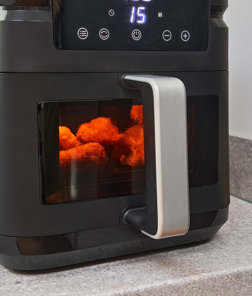Gătitul devine o plăcere cu cele 12 programe automate ușor de accesat prin ecranul tactil LED. Panoul transparent îți oferă posibilitatea de a urmări preparatele în timp real, fără a întrerupe procesul de gătire. Dimensiunile compacte ale aparatului îl fac perfect pentru orice bucătărie. Ocupă un spațiu minim fără a compromite performanța. Stratul antiaderent al coșului previne lipirea alimentelor. Iar materialele sunt gândite pentru o curățare ușoară.