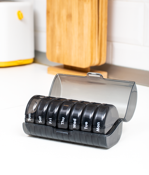 Ajută-i pe cei în vârstă din familia ta să nu uite de medicamentele zilnice, care sunt atât de vitale pentru ei. Cu acest organizator se rezolvă și riscul de a greși. Pentru că vor avea exact de ce au nevoie în cutii separate. De asemenea, pregătește-le vitaminele și celor mici pentru școală. Așa vor știi când și ce să ia. Știm că sănătatea familiei tale este pe primul loc pentru tine.