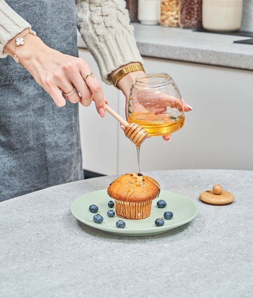 Permite o dozare precisă. Eviți scurgerile și murdăria. Fiecare linguriță de miere ajunge exact unde trebuie, fără risipă. Îți îndulcești ceaiul sau deserturile rapid și curat, fără să îți murdărești mâinile sau blatul.