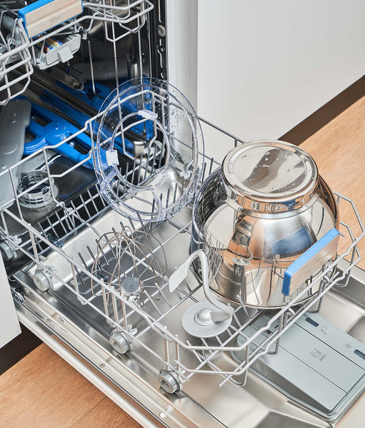 - Bolul din inox și accesoriile (cu excepția paletelor) sunt compatibile cu mașina de spălat vase