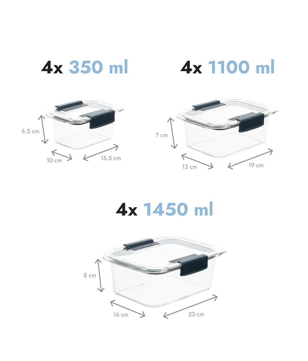 Ideale pentru a păstra și transporta mesele gătite într-un mod calitativ și ușor. Sunt transparente și elegante, precum sticla. Iar în același timp sunt mult mai ușoare și rezistente. Îți oferă opțiuni nelimitate pentru a pregăti, păstra și încălzi mesele. Frigiderul rămâne mult mai organizat. Iar preparatele sunt în siguranță mulțumită capacului cu închidere etanșă.