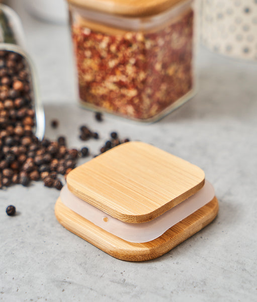 Forma pătrată și designul modern aduc plus de eleganță bucătăriei tale. Recipientele estetice se integrează perfect. Oferă un mod practic și eficient de organizare a condimentelor. Iar capacele din bambus vin cu un aer rustic și natural.