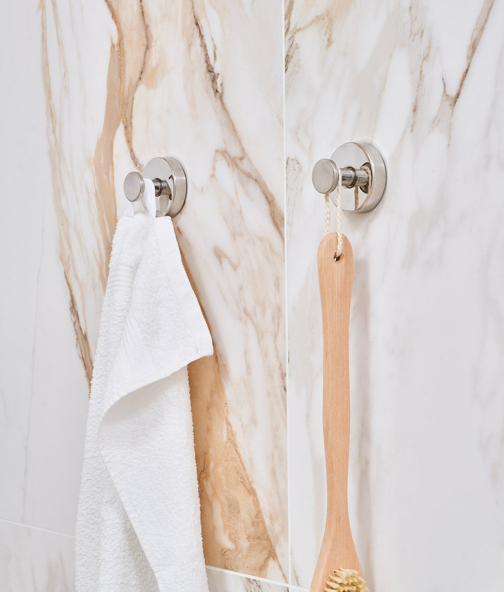 Deși compacte, ventuzele au un diametru de 6 cm și susțin până la 5 kg, fără să alunece sau să se desprindă. Fixarea e stabilă și durabilă, indiferent dacă le folosești în baie, dressing sau bucătărie. Designul simplu și funcțional le face potrivite pentru orice colț al casei tale.