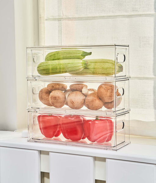 Organizarea frigiderului devine mai eficientă! Poți stivui cutiile una peste alta fără să pierzi accesul la conținut. Perfecte pentru optimizarea spațiului!