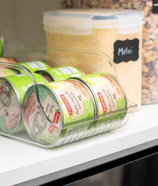 În sfârșit, conservele rămân organizate pe raft. Nu le mai ai împrăștiate peste tot și nu mai ocupă așa mult spațiu. Cu acest suport, fiecare are locul ei bine definit. Iar accesul devine simplu și rapid. Acestea stau la rând pentru a fi consumate.