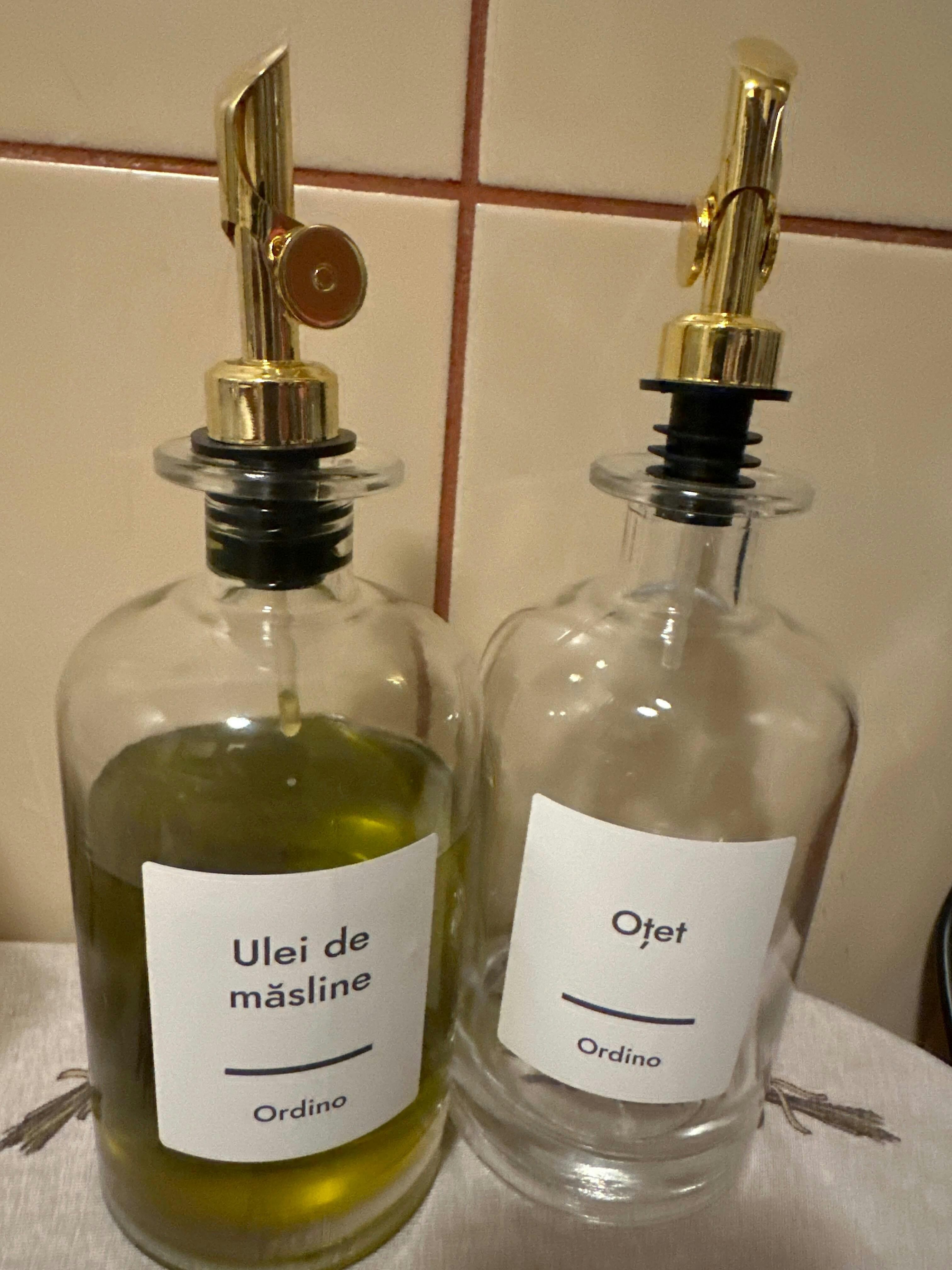 | Ideal pentru | Păstrarea uleiului și oțetului din bucătărie într-un mod estetic. |