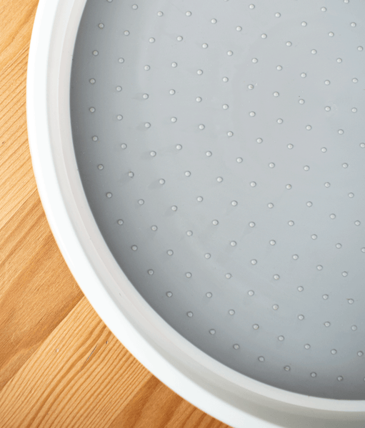 Suprafața antiderapantă oferă siguranță și stabilitate obiectelor. Acestea nu o să mai cadă nici atunci când tava e în mișcare. Marginea exterioară, de asemenea, le susține. Fundul acesteia are și ea picioare antiderapante.