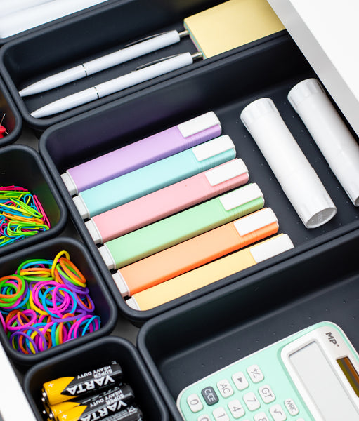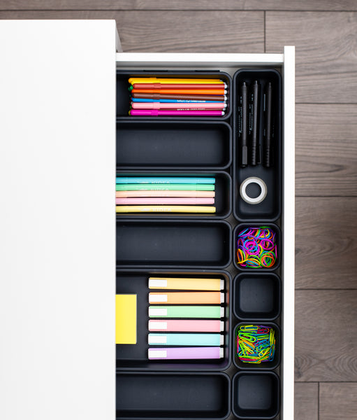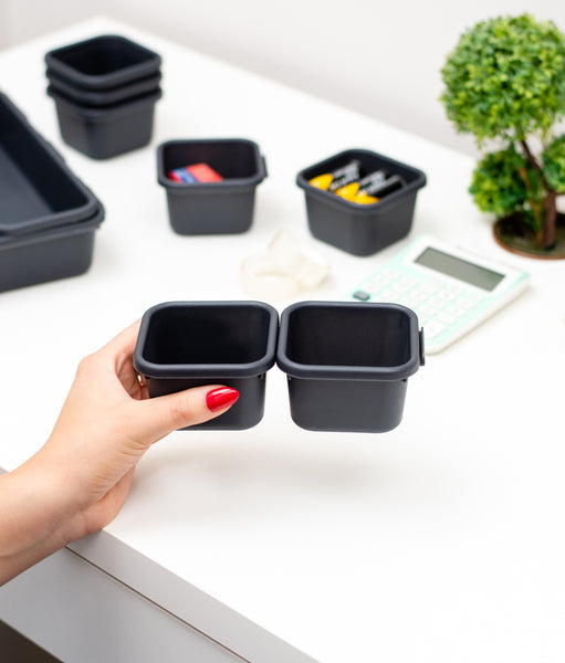 Ideale pentru a-ți organiza sertarele de birou simplu și practic. Acum fiecare accesoriu de birou își are propriul loc. O să-ți placă la nebunie când găsești totul mai rapid. Sistemul de interconectare nu lasă cutiile să se miște. Îți permite să le conectezi între ele așa cum dorești. Sertarul tău rămâne în permanență organizat.