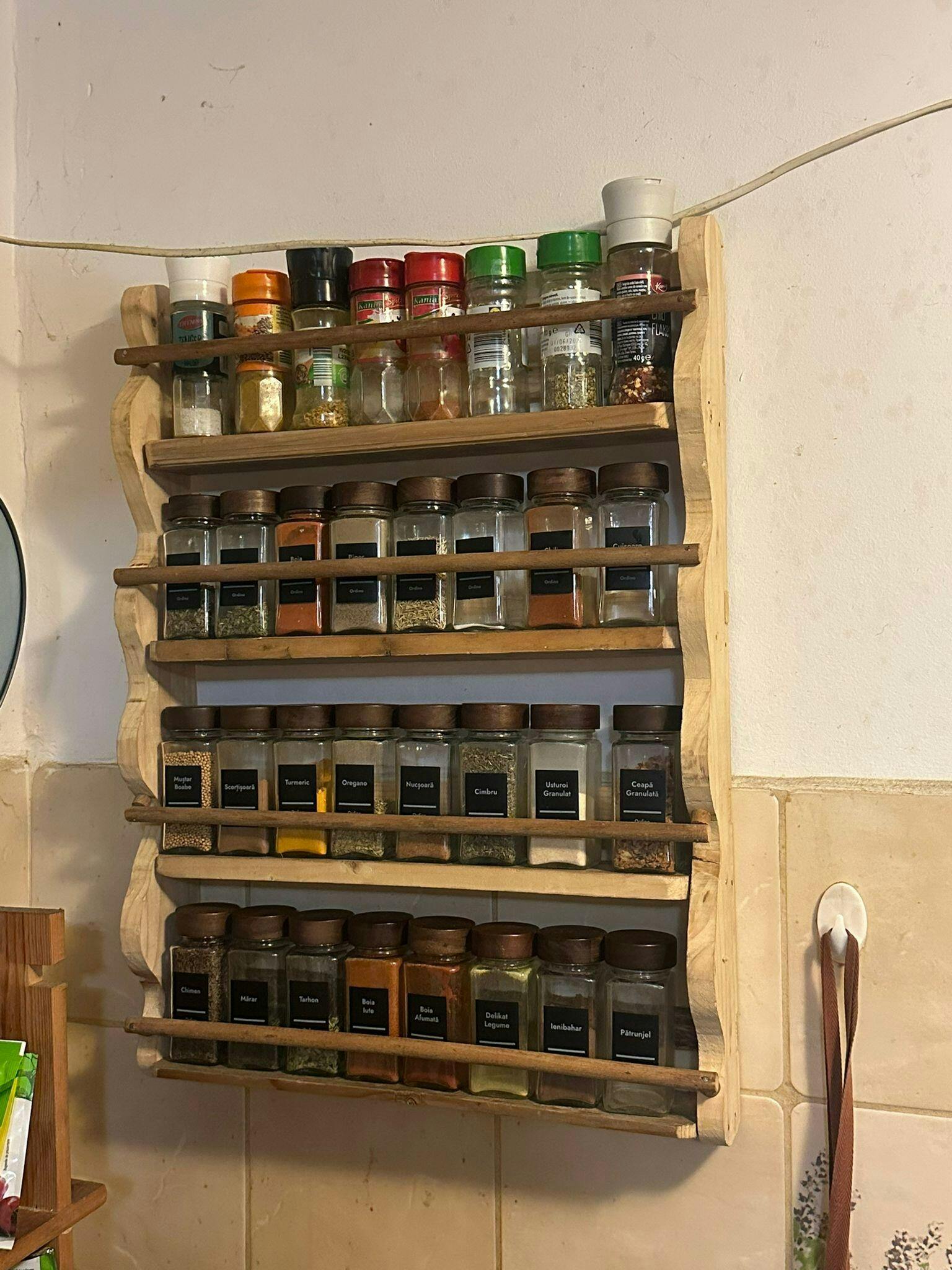 | Ideal pentru | Organizarea condimentelor într-un mod deosebit: sare, piper, zahăr, oregano, boia, turmeric, pătrunjel, rozmarin, cimbru, busuioc, coriandru, tarhon, ierburi etc. |