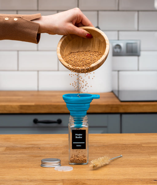 Cu pâlnia din silicon procesul de umplere al sticluțelor se simplifică considerabil. Totul devine rapid și comod. Dar și satisfăcător și relaxant. Iar pâlnia pliabilă poate fi depozitată oriunde pentru că ocupă puțin loc.