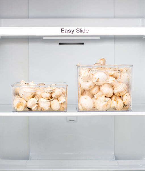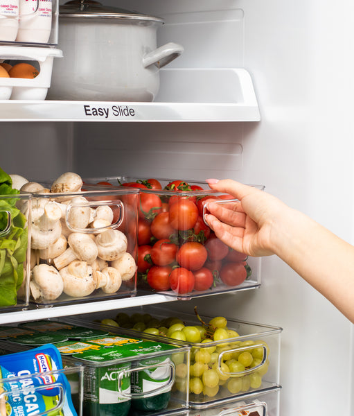 Mânerele încorporate simplifică transportul și organizarea cutiilor. Te poți folosi de tot spațiul neocupat din frigider pentru că sunt și etajabile. Iar curățarea lor este rapidă și ușoară.