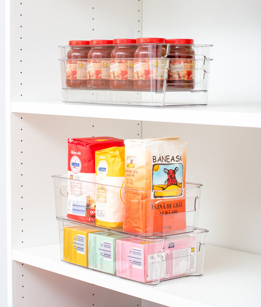 Ideale pentru a-ți organiza alimentele din cămară într-un mod eficient, estetic și practic. Sunt rezistente și ușor de mutat. O să-ți placă la nebunie cât de simplu îți poți depozita produsele. Cămara devine ordonată și curată. Aceste cutii îți oferă mai mult spațiu de depozitare și le ai pe termen lung.