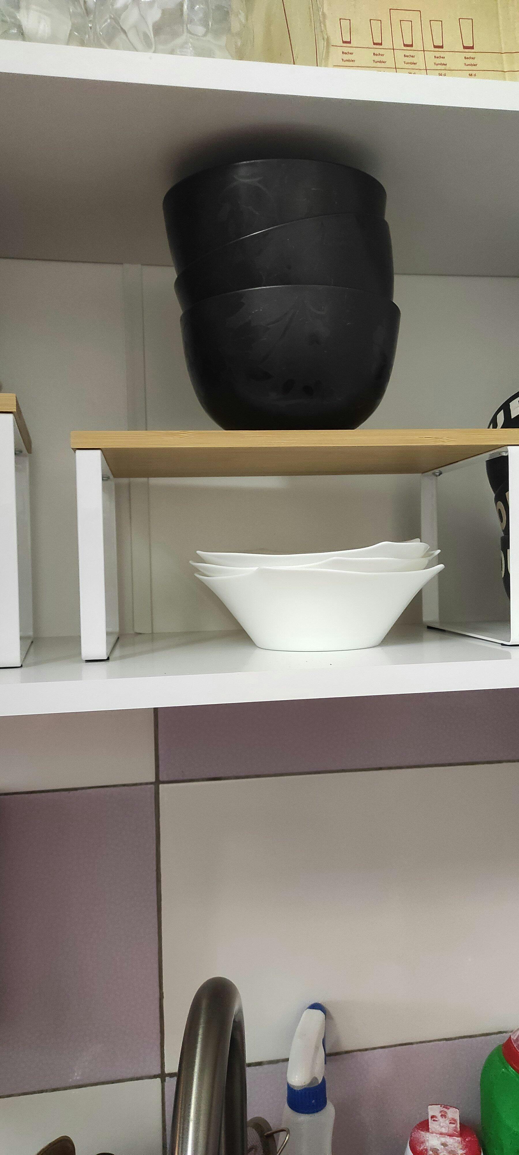 Poți suprapune cele două rafturi pentru a economisi spațiu sau le poți folosi separat în locuri diferite. Ai astfel flexibilitate totală în organizarea bucătăriei.
