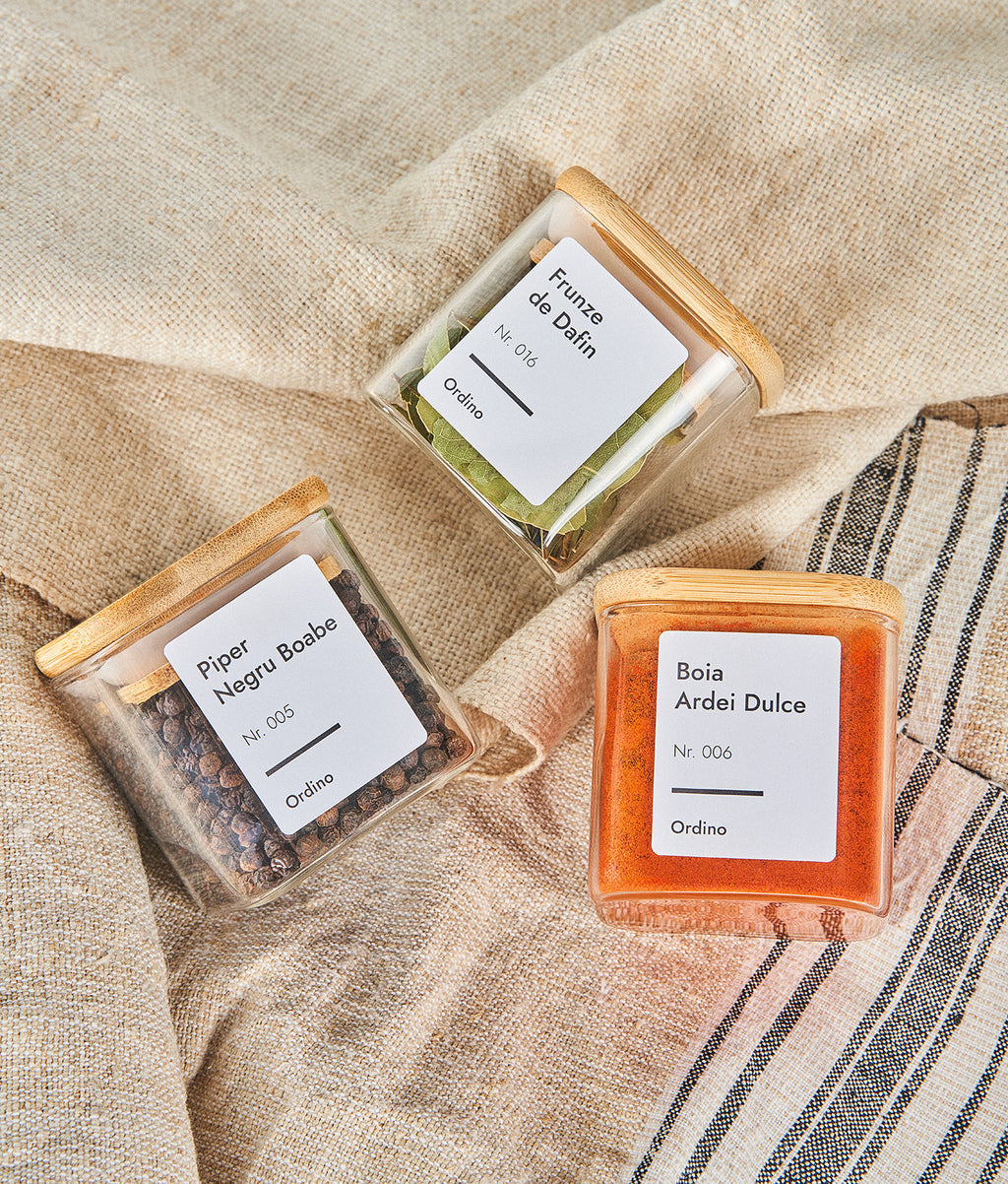 | Ideal pentru | A personaliza recipientele de condimente după bunul plac. |