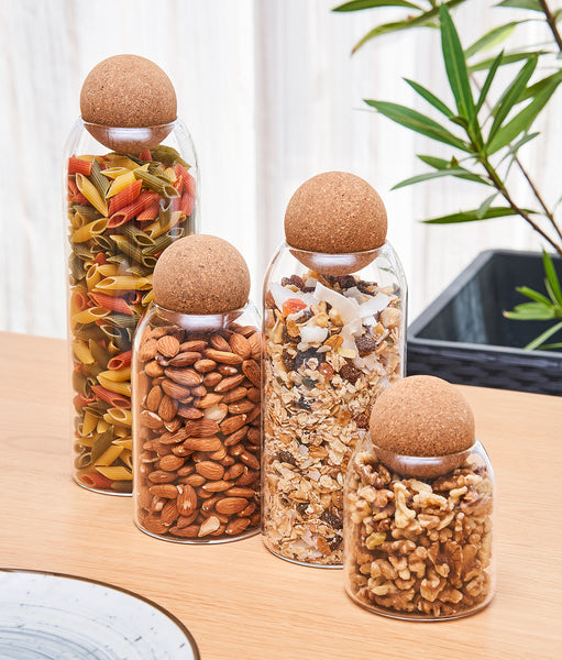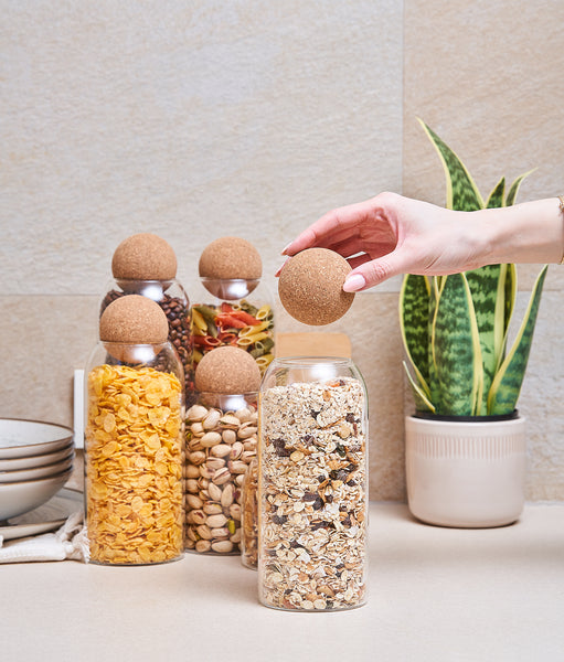 Ideale pentru a depozita și organiza alimentele uscate din casă într-un mod mai estetic. Acestea rămân proaspete, fără să ia vreun miros. Poți uita de pungile de alimente desfăcute din dulap. De acum, totul e organizat în aceste recipiente de sticlă. Sunt ușor de spălat și construite să reziste. O să le iubești în timpul gătitului! Sunt accesibile și ușor de folosit. Capacul din plută asigură eleganță bucătăriei tale.