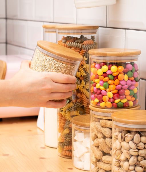 Ideale pentru a depozita alimentele pe termen lung într-un mod sănătos. Acestea rămân proaspete, fără să ia vreun miros. Poți uita de pungile de alimente desfăcute din dulap. De acum, totul e organizat în aceste recipiente de sticlă. O să le iubești în timpul gătitului! Sunt accesibile și ușor de folosit. Capacul de bambus cu închidere etanșă asigură prospețimea și gustul autentic al alimentelor. Pe lângă toate acestea, arată estetic și îți schimbă aspectul bucătăriei. Sunt ușor de spălat și durabile. Îți sunt alături toată viața!
