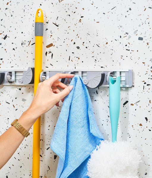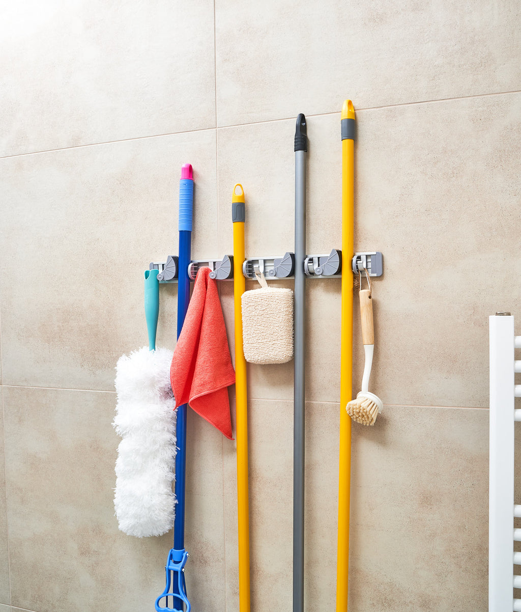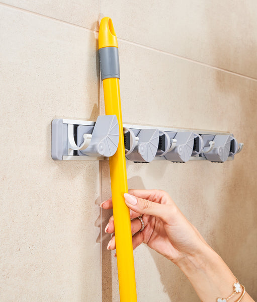 Ideal pentru organizarea uneltelor cu coadă și a altor produse de uz casnic care pot fi agățate. Acest suport transformă peretele într-un colț de depozitare practic și elegant. Mopurile, măturile și toate accesoriile de curățenie au locul lor. Iar tu scapi de dezordinea de pe podea. Totul rămâne organizat, la îndemână și pregătit de folosit.