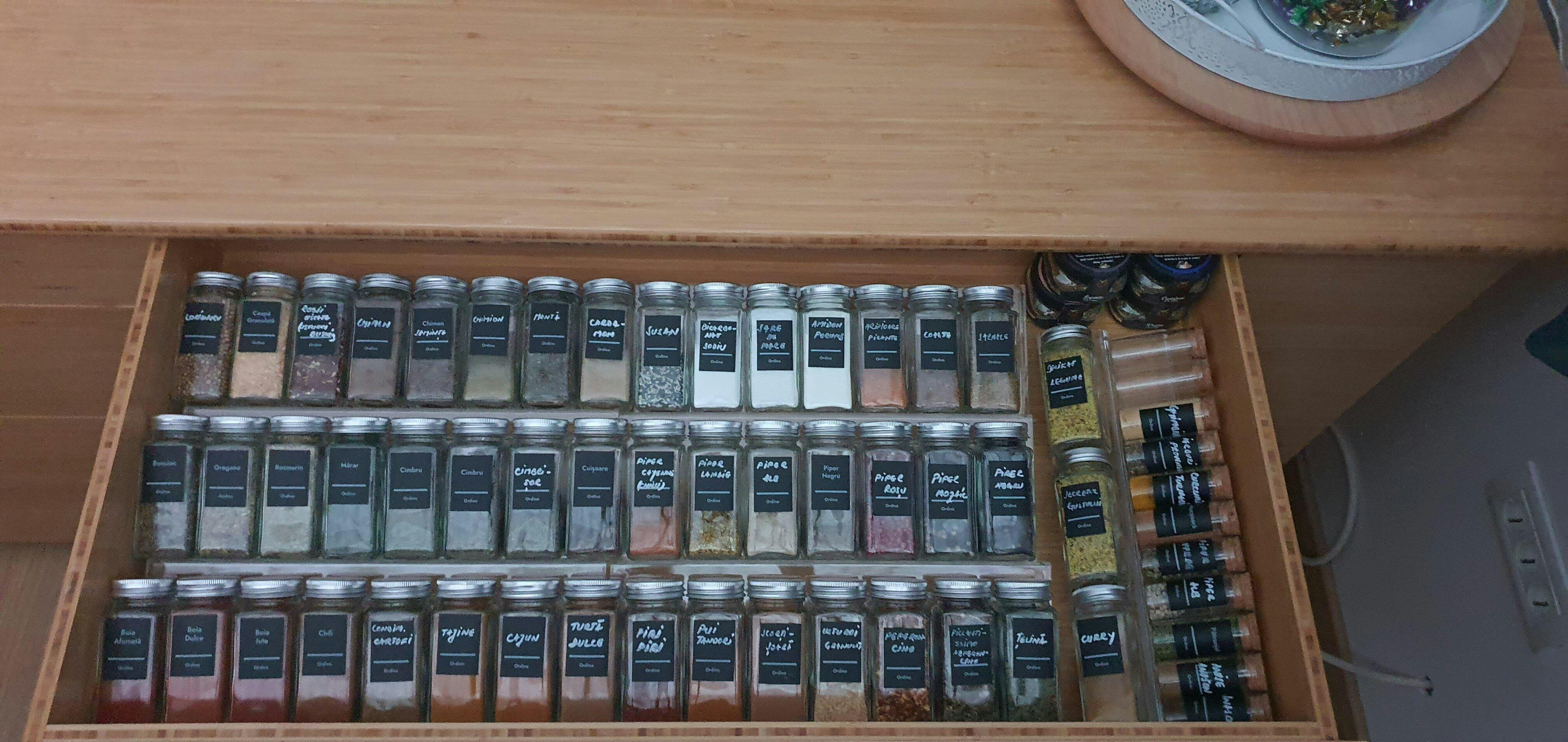 | Ideal pentru | Depozitarea sticluțelor de condimente în sertarul din bucătărie pentru a economisi spațiu și a avea acces ușor la ele. |