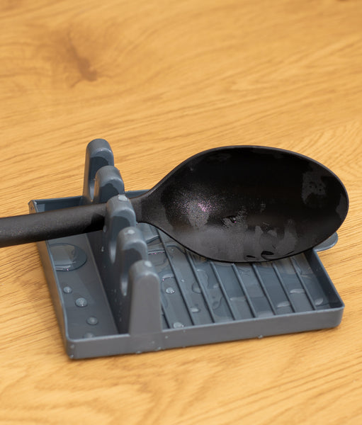 Această soluție inovativă îți menține bucătăria curată în timp ce tu gătești. Spune adio picurăturilor de pe blat. De acum toate sunt reținute de acest suport pentru ustensile.