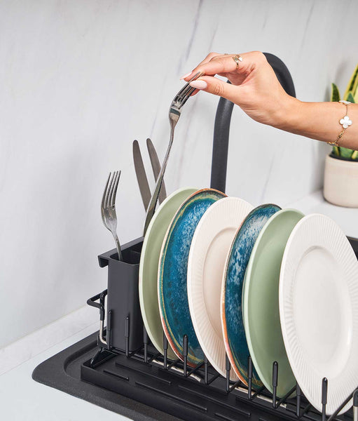 Fiecare tacâm și farfurie își găsește locul în suportul dedicat. Acestea optimizează spațiul și permit uscarea rapidă a vaselor, fără a aglomera chiuveta sau blatul de bucătărie.