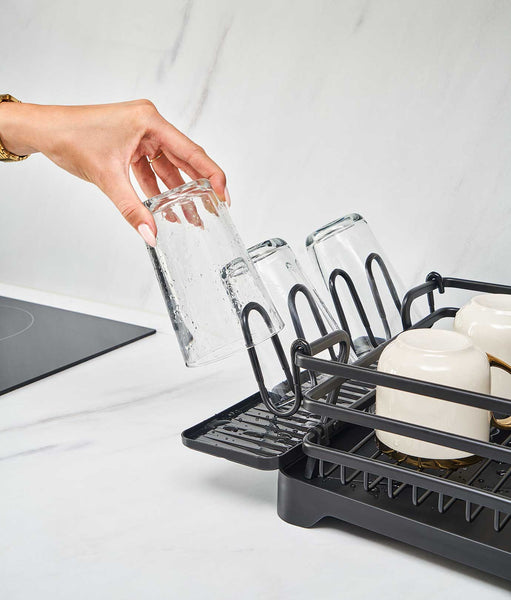 Uscătorul include un loc dedicat pentru pahare. Acestea se usucă rapid și eficient, fără risc de zgârieturi sau de a ocupa spațiu inutil pe blatul de lucru.